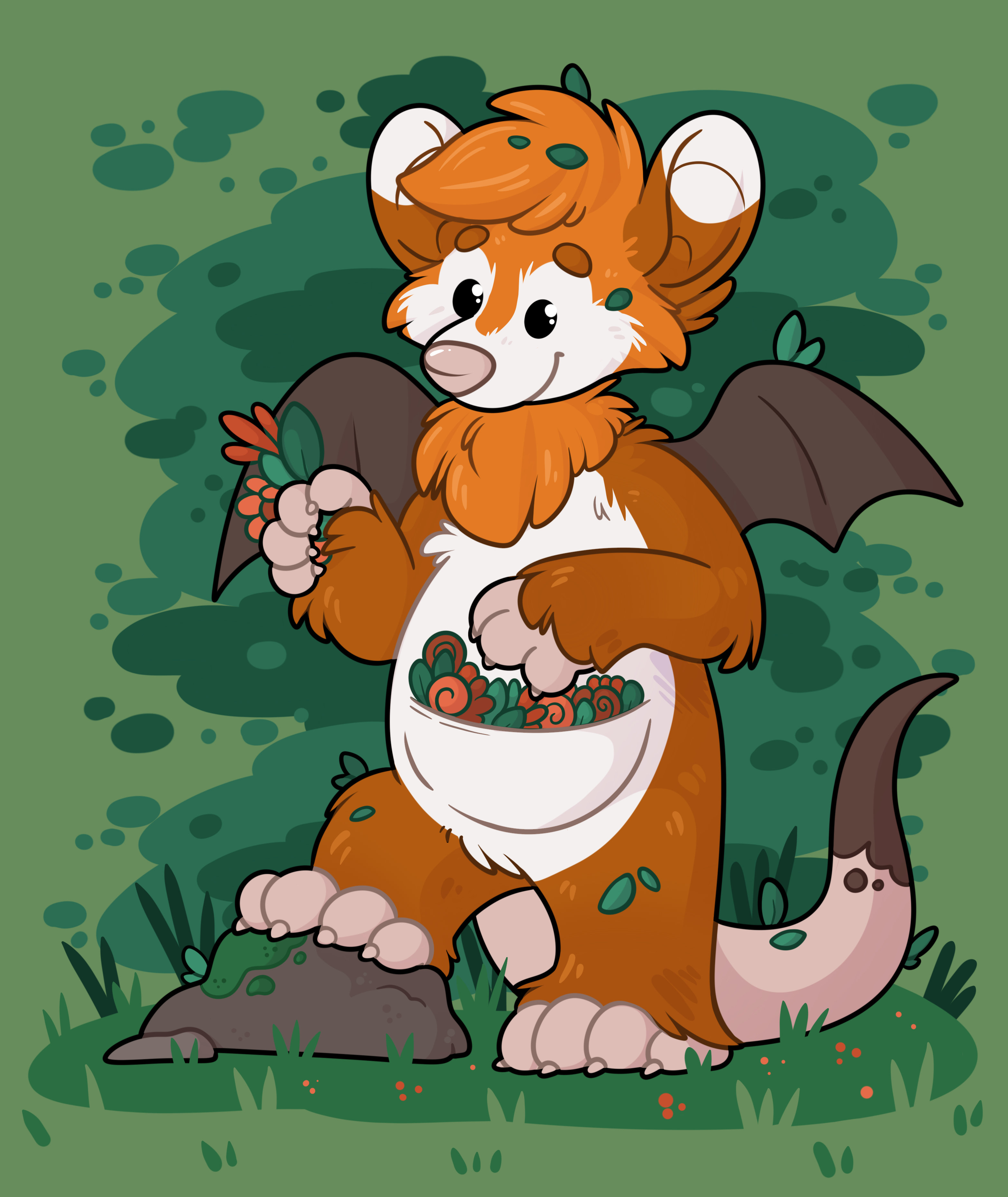 This is a full body illustration of your character on a simple background. The background will always be an outdoorsy silhouette style (like the examples) and is artistic freedom.